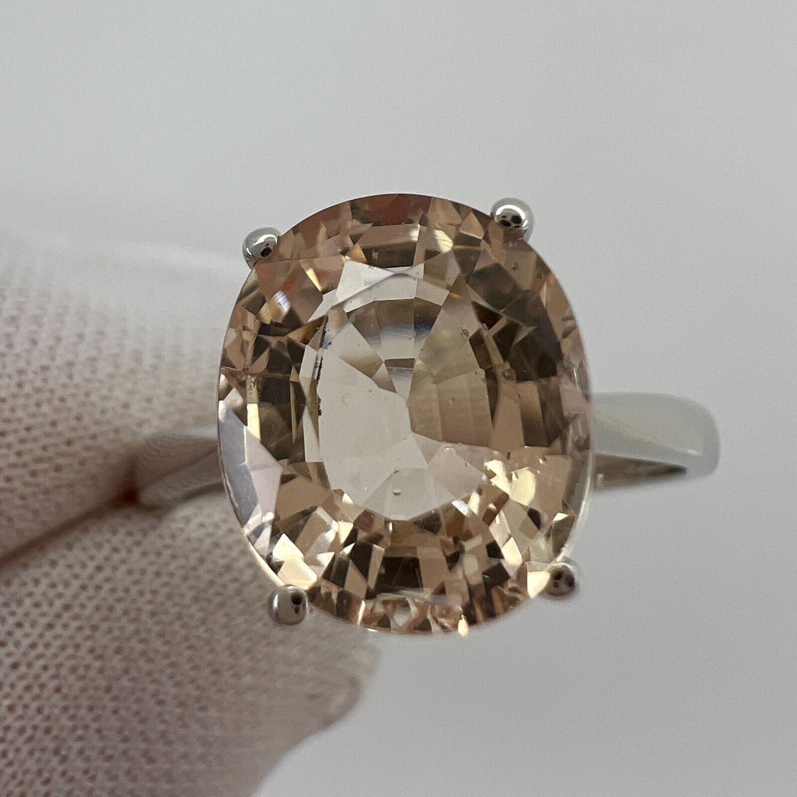2.76 Carat Peach Pink Orange Morganite Oval Cut White Gold Solitaire Ring