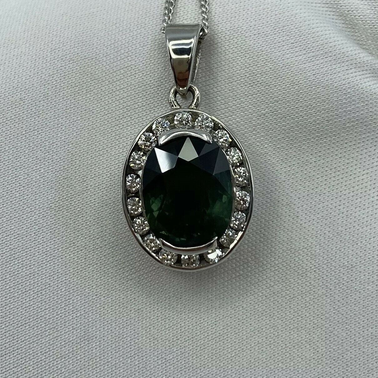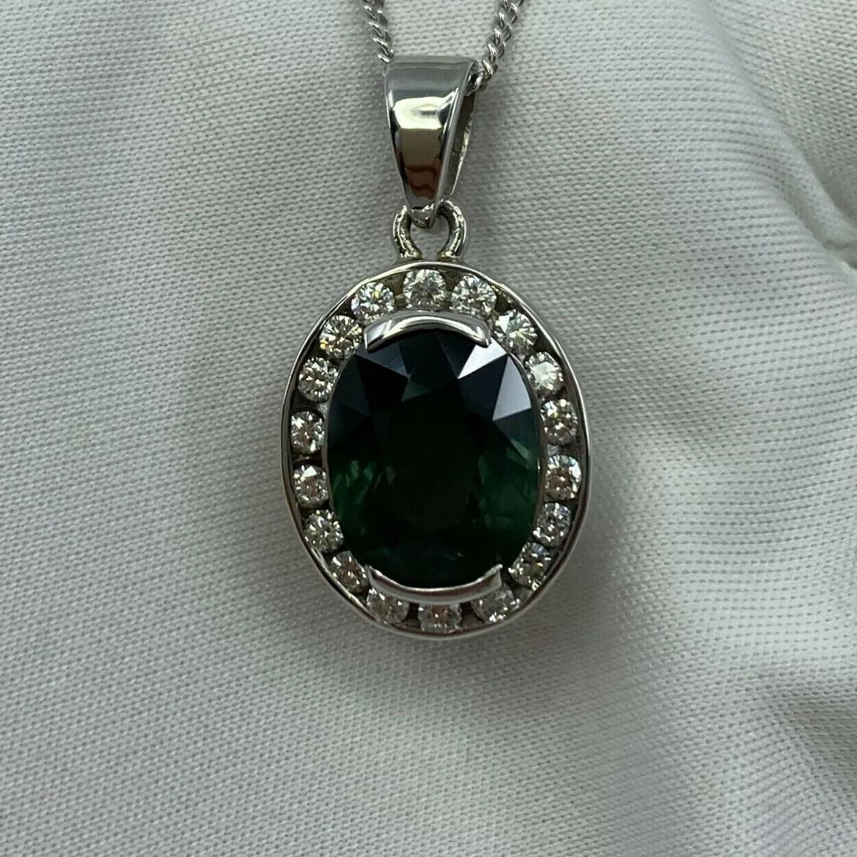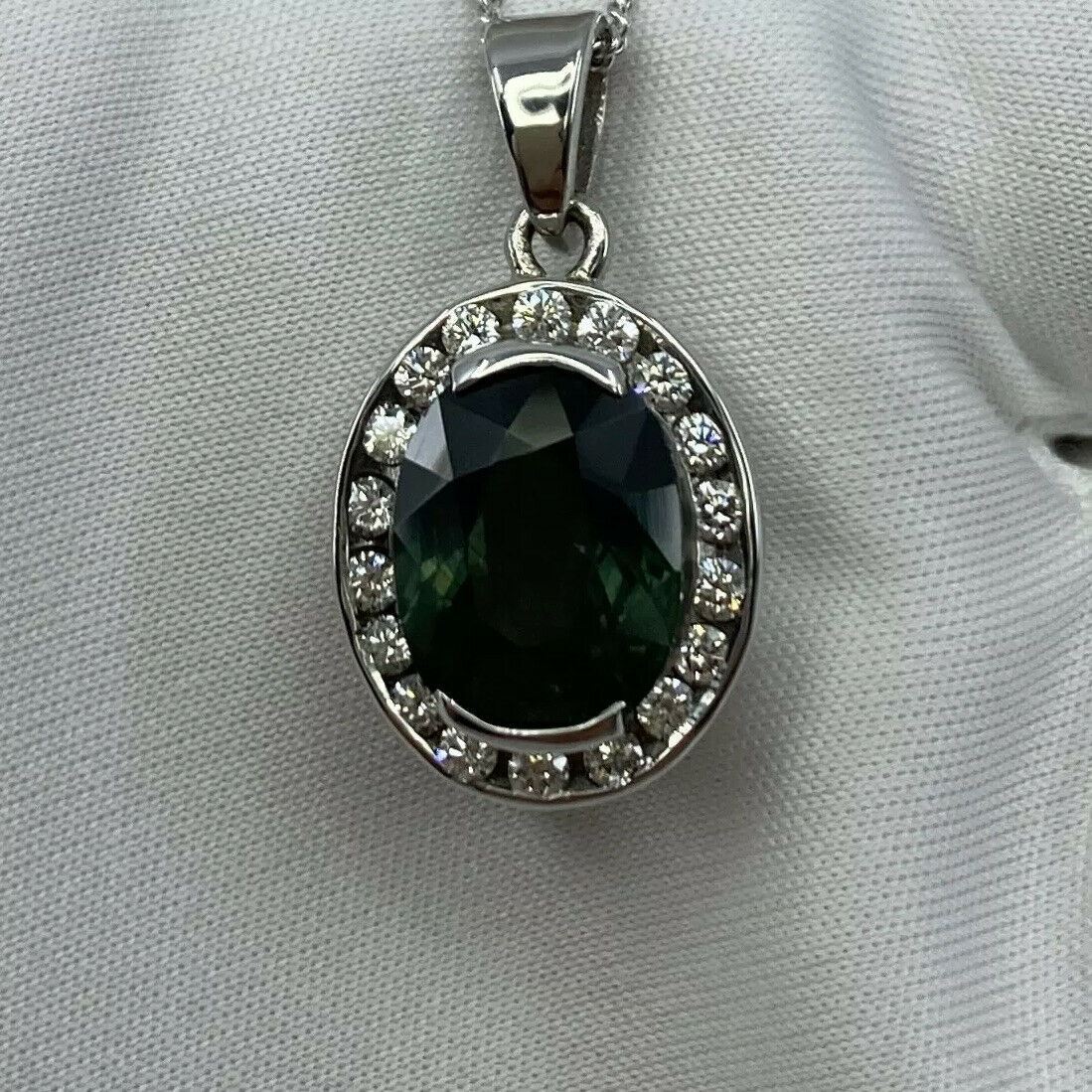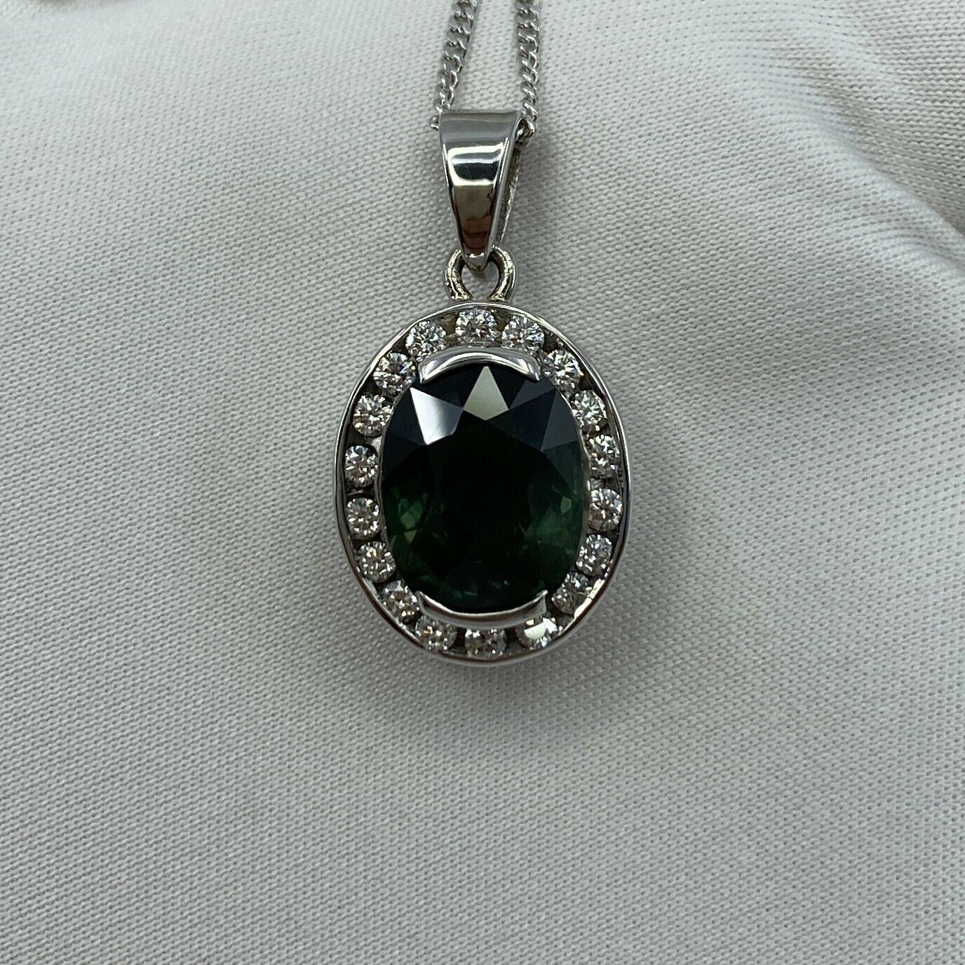 5.68ct IGI CERTIFIED Colour Change Green Sapphire Diamond 18k White Gold Pendant
