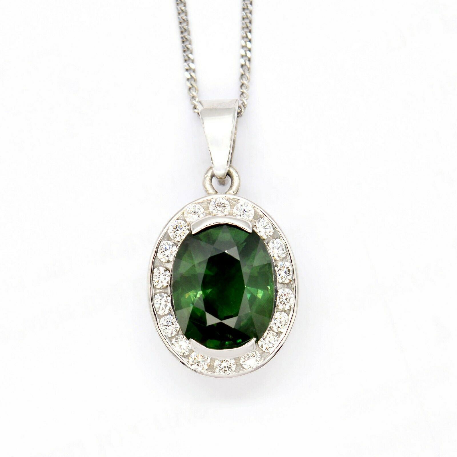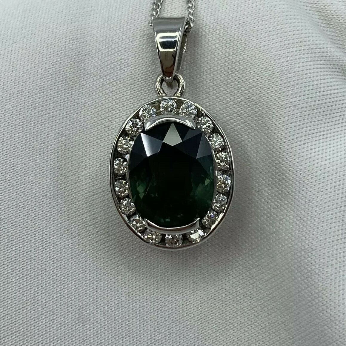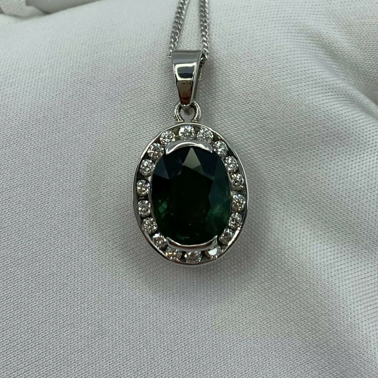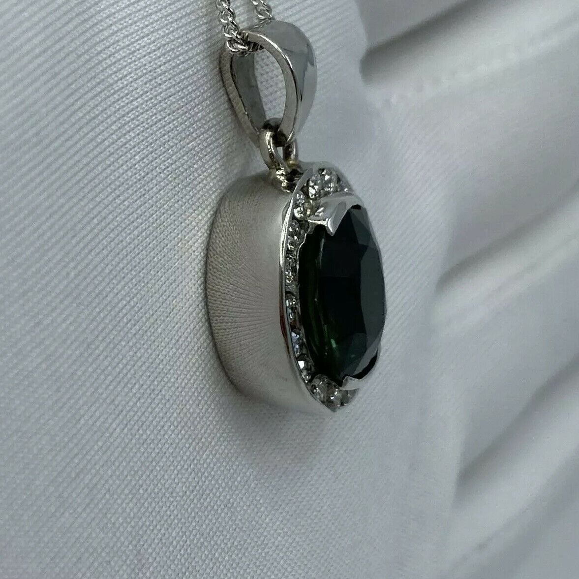 5.68ct IGI CERTIFIED Colour Change Green Sapphire Diamond 18k White Gold Pendant