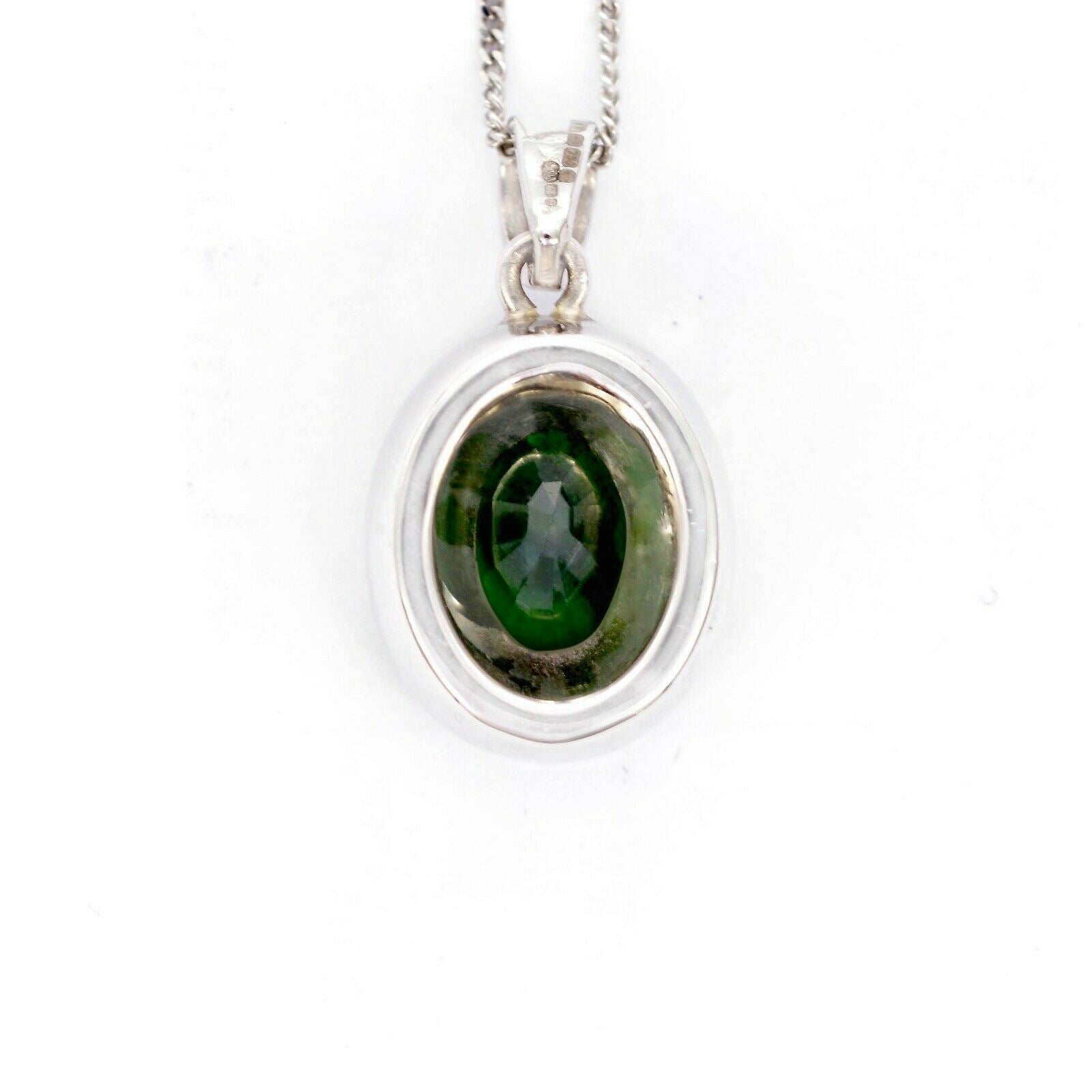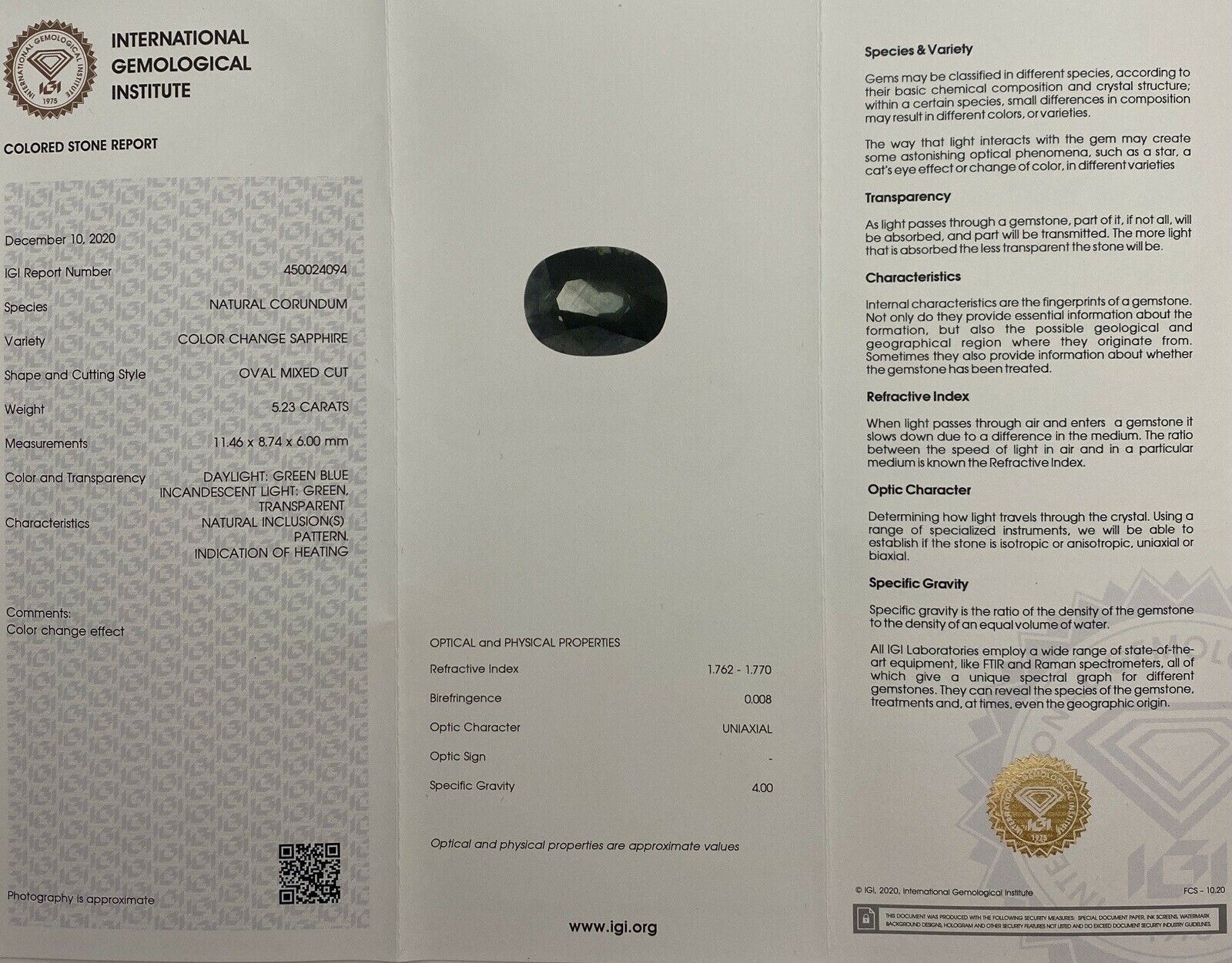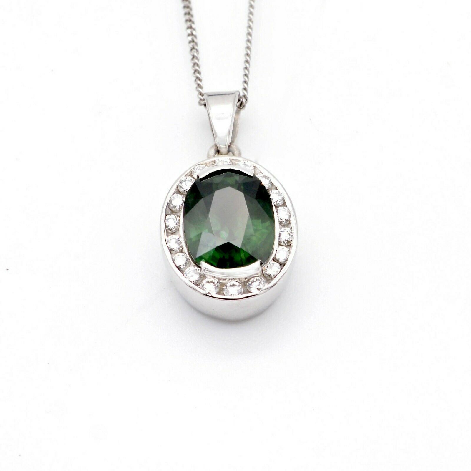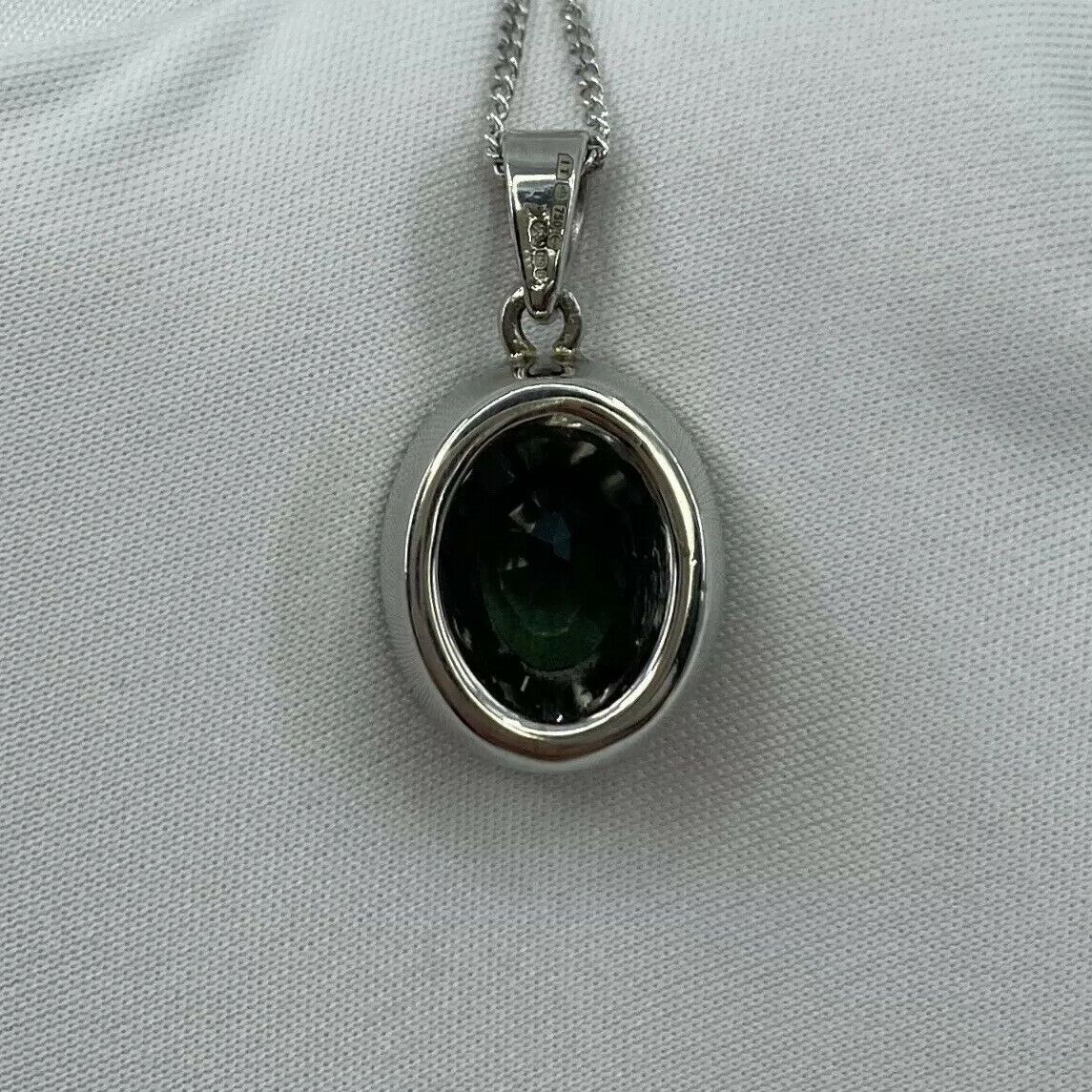 5.68ct IGI CERTIFIED Colour Change Green Sapphire Diamond 18k White Gold Pendant